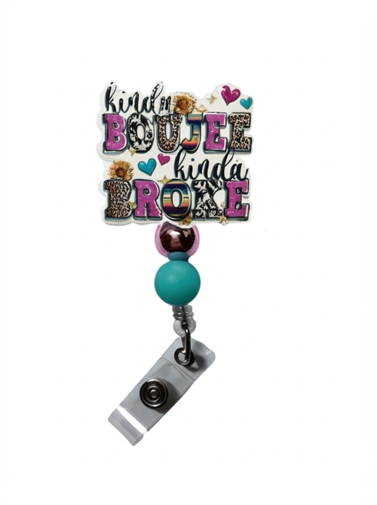 Add some sass to your work attire with this Kinda Broke, Kinda Boujee badge reel! This hilarious and relatable accessory is perfect for anyone who loves a good deal as much as they love luxury. The clever phrase is displayed in a stylish font on a durable, easy-to-clean reel.
